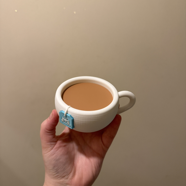 Homemade 3D Printed Teacup Seat For A Jellycat Steepy Teabag. Made From Matte And Silk PLA